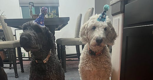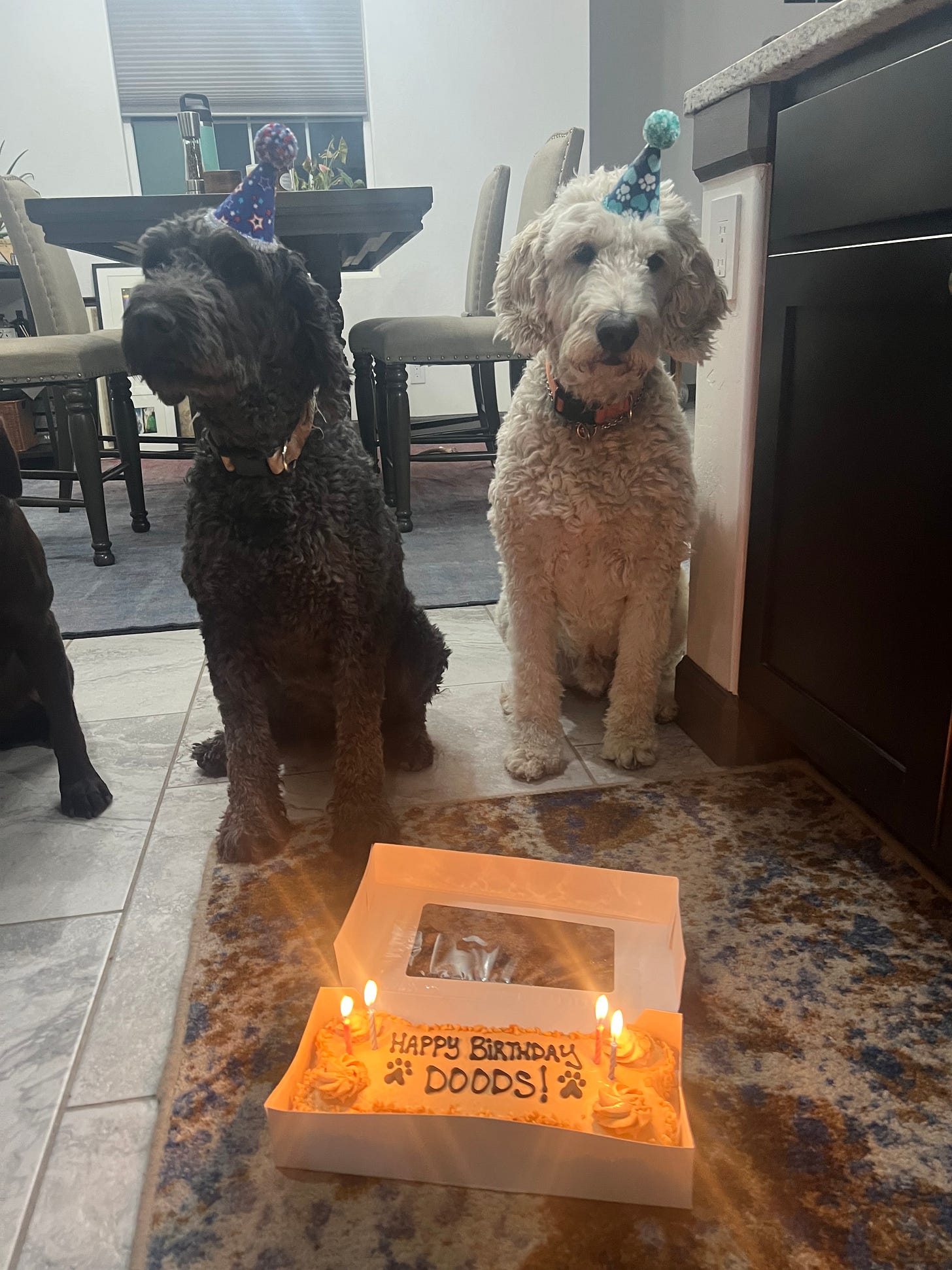 The doods (Cash and Waylon) turned 4 this month! We celebrated with pawty hats and a cake ordered online which turned out to be ginormous.
